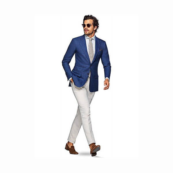 With its versatile color and well-defined fit, this blue Washington is a must-have for seasonal style. Cut from pure Angelico linen, this 2.5-button jacket features flap pockets, structured shoulder and peak lapels; giving it a definitive masculine silhouette. #navy #linen #peaklapels #suit #suitsupply